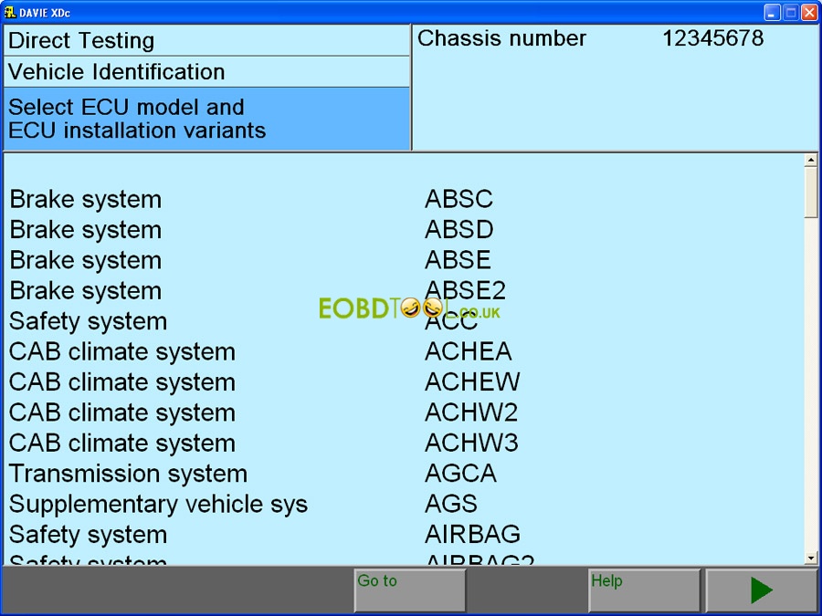 Direct Testing mode allows immediate selection of individual control units and direct test of their components and functions.